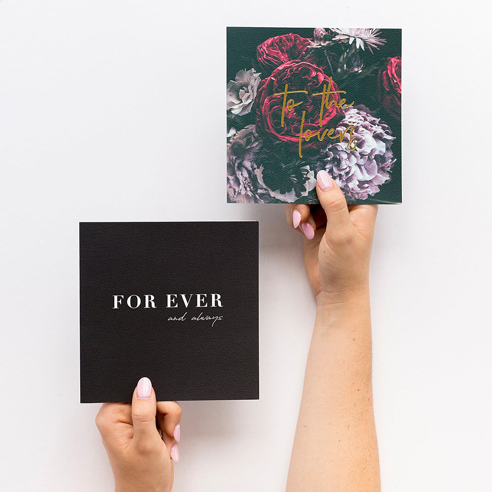 300gsm sustainable stock with vegetable inks. Recycled cotton envelope.